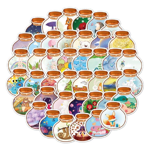 50 kaunista tarraa erilaisilla eläin- ja luontoaiheilla. Ne ovat kooltaan noin 6-8 cm ja kiinnittyvät tasaisille pinnoille esimerkiksi kannettavissa tietokoneissa, laukkuissa, kaapeissa, rullalaudoissa, polkupyörissä ja monessa muussa. Nämä hienot tarrat on valmistettu kestävästä ja vedenpitävästä PVC:stä.