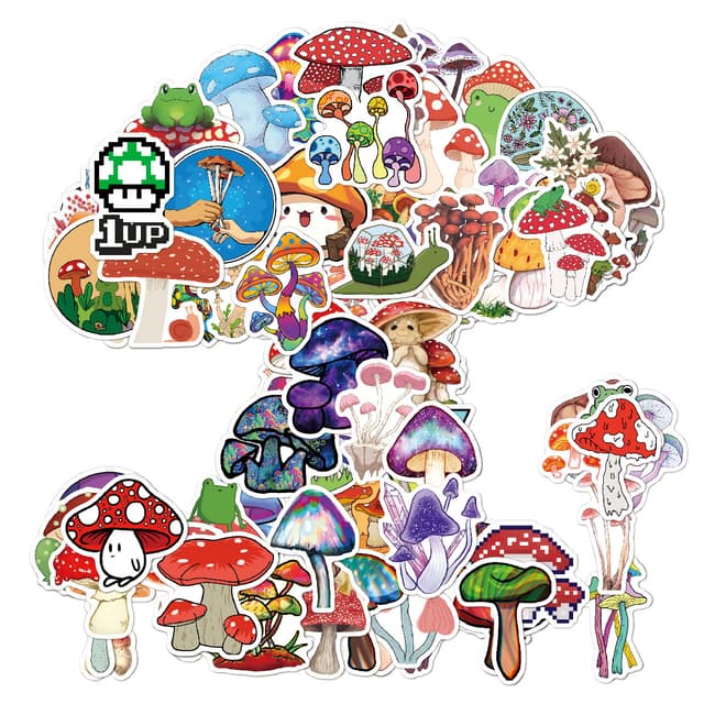 100 tarraa makeista sienistä eri kuvioissa, lähes toistumattomina. Nämä tarrat sopivat useimpien esineiden koristeluun, voit kiinnittää ne haluamaasi paikkaan, näyttäviä ja tyylikkäitä.