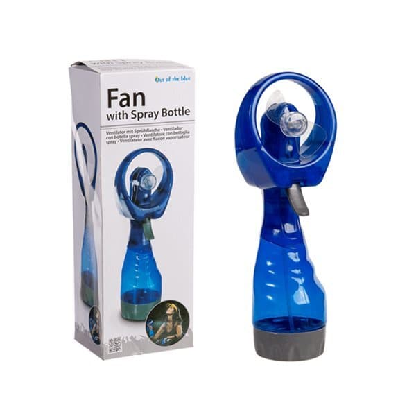 Käsituuletin kuumille päiville, jossa on myös sumutinpullo, johon voidaan lisätä vettä, joka antaa lisäjäähdytystä. Se on ihanteellinen ulkoiluun, ei vie paljon tilaa, mikä on hyvä myös matkoilla.