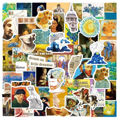 Taiteelliset ja monipuoliset mallit: Näissä tarroissa on 100 ainutlaatuista van Goghin ja Mona Lisan graffitityylistä designia, ja ne lisäävät taidetta ja persoonallisuutta tavaroihisi. Jokainen tarra on kooltaan 3-8 cm, mikä tarjoaa erilaisia kokoja tarpeisiisi.