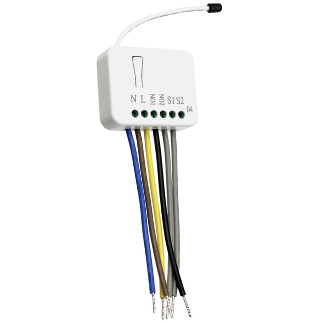 Fjärrstyrd på/av-mottagare för infälld installation. Går att koppla så att befintlig strömbrytare fortfarande fungerar som vanligt.