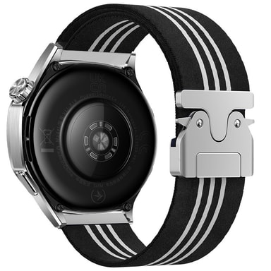 Päivitä Huawei GT5/Watch 3/4 Pro tällä 22 mm:n mustalla nailonpunotulla kellon rannekkeella. Siinä on turvallinen laskuvarjosolki, säädettävä aaltokuvio ja hengittävä materiaali koko päivän mukavuutta varten. Täydellinen kaikkiin tilaisuuksiin.Tutustu ominaisuuksiin