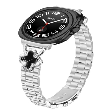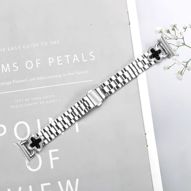 Tyylikäs apilamuotoilu: Tämä Samsung Galaxy Watch7 47MM:n kanssa yhteensopiva ranneke tuo älykelloosi tyylikkyyttä. Huolellisesti muotoillut apilalenkit, joissa on kimaltelevia seoshartsiaksentteja, nostavat älykellosi pelkästä laitteesta tyylikkääksi lisävarusteeksi. Täydellinen niille, jotka arvostavat hienostuneita yksityiskohtia ja haluavat ilmaista yksilöllisyyttään puettavan tekniikan avulla. Ranneke yhdistää saumattomasti klassisen viehätyksen ja modernin teknologian, varmistaen, että erotut joukosta missä tahansa ympäristössä, olipa kyseessä virallinen tapahtuma tai rento retki. Ruostumattoman teräksen ja seoshartsin yhdistelmä takaa mukavan istuvuuden ja kestävyyden päivittäisessä käytössä.