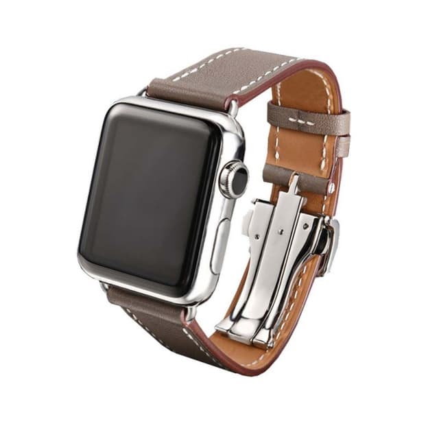 Tyylikäs ruskea nahkaranneke napsautuskiinnityksellä. Säädä reikä kerran asettamalla kello helposti perhonen lukolla, jotta kello helposti asetetaan päälle ja pois.