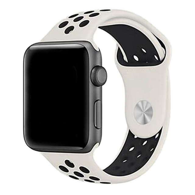 Vaikeasti tuuletettu urheilurannekoru nappilukolla. Tekniset tiedot Väri: valkoinen / musta Sopii: Apple Watch Series 1, 2 ja Nike + Asennus: 42mm Pituus: 98mm + 140mm sisältö 1 x Sport silikonirannekoru