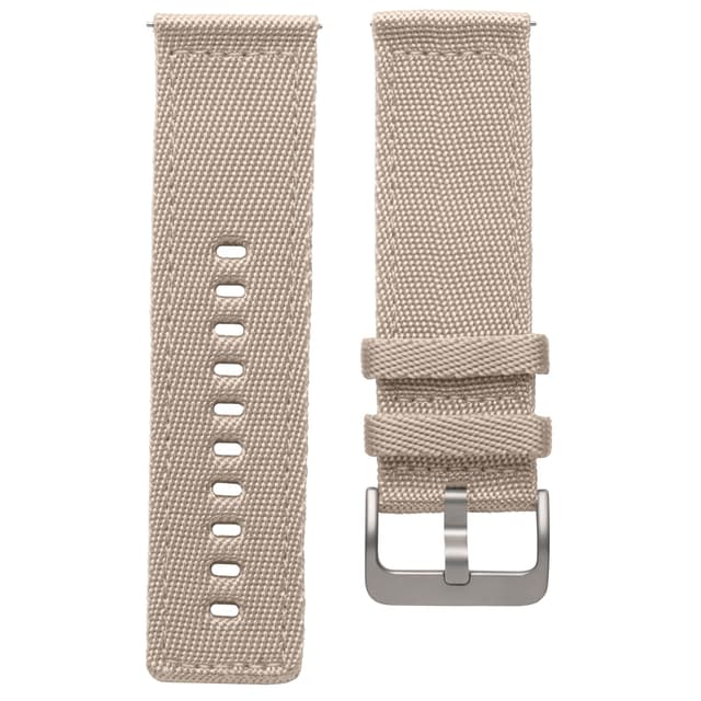 Päivitä FitBit Blaze -urheilukellosi ulkonäköä vaihdettavalla rannekkeella. Beige ranneke on valmistettu punotusta nailonista, joka on käytössä kestävä ja tuntuu miellyttävältä ihoa vasten. Rannekkeen lukko on valmistettu ruostumattomasta teräksestä.