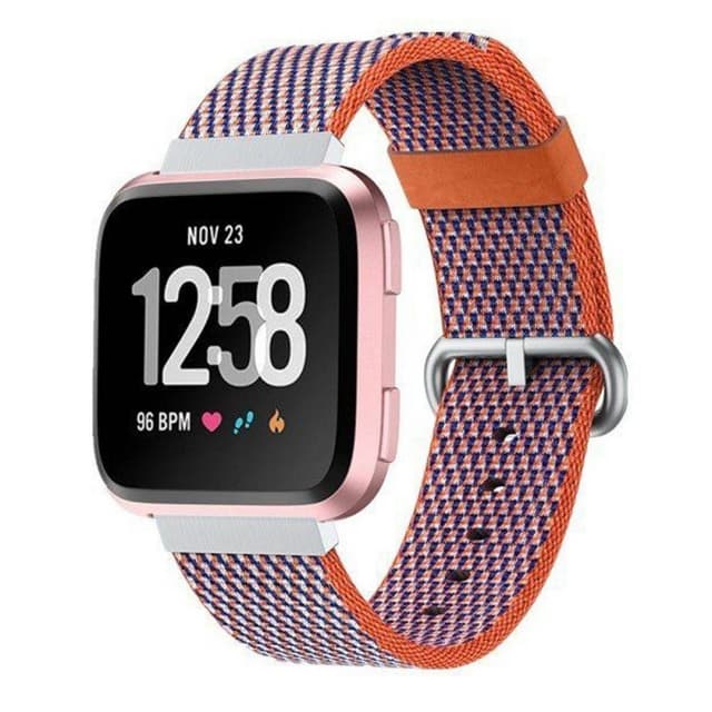 Tekniset tiedot Väri: Violetti raidallinen Sopii: Fitbit Versa / Versa Lite Kiinnitys :: 22mm Pituus: 88 + 125mm Metallikiinnike: Kyllä Metallilukko: Kyllä sisältö 1 x nailonrannekoru 2 x nauhatulostus