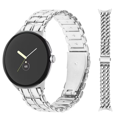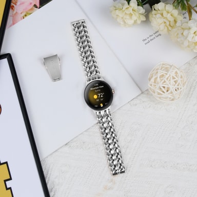 Helppo säätää ja asentaa: Hihnan säätäminen haluamaasi kokoon on vaivatonta säädettävien linkkien ja pikalukitusnappien ansiosta. Myös hihnan kiinnittäminen ja irrottaminen Google Pixel Watchista on helppoa.