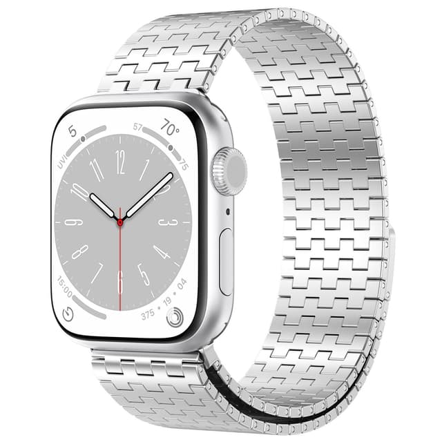Ainutlaatuinen magneettilukko: Ruostumattomasta teräksestä valmistettu hihnamme on varustettu ainutlaatuisella magneettilukolla, joka tarjoaa turvallisen ja saumattoman istuvuuden Apple Watchillesi. Magneettinen suljin varmistaa vaivattoman asennuksen ja irrottamisen, mikä takaa täydellisen ja mukavan istuvuuden joka kerta.
