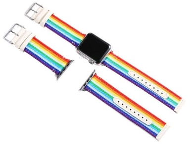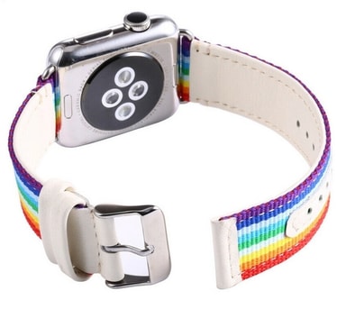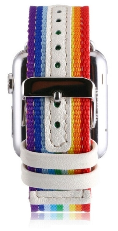 Säädettävä kelloranneke sateenkaaren väreissä Apple Watchille 42 mm tekstiilistä ja PU-nahasta valmistettuna.