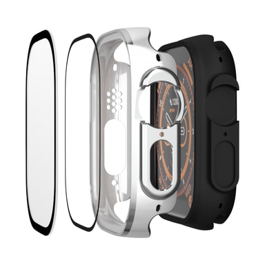 • Kansi+näytönsuojakalvo Apple Watchille 9/8/7 45mm Hopea
