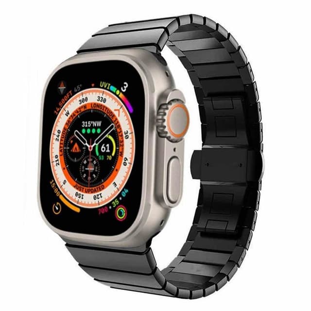 Musta kellon renneke ruostumatonta terästä Apple Watch Ultra (49mm), mukava ja tyylikäs täydellisesti istuen.