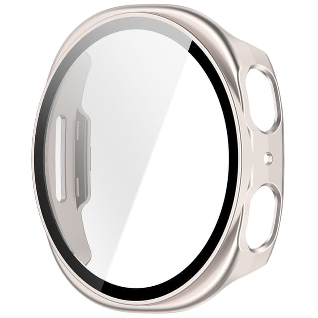 Täysi suoja: Tämä kotelo tarjoaa täydellisen suojan Samsung Galaxy Watch 8 40mm:lle. Se yhdistää PC-kehyksen karkaistun lasinäytön suojan kanssa, suojaten älykelloasi naarmuilta, kolhuilta ja vahingossa tapahtuvalta putoamiselta. Integroitu muotoilu varmistaa, että sekä näytön että kellon reunat on suojattu, säilyttäen sen koskemattoman kunnon.