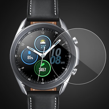 Erittäin kirkas suojaus: Koe vertaansa vailla oleva kirkkaus erittäin läpinäkyvällä karkaistulla lasinäytönsuojalla, joka on suunniteltu huolellisesti säilyttämään Samsung Watch 3 -kellon näytön alkuperäinen eloisuus. Nauti kristallinkirkkaista kuvista ja suojaa samalla naarmuilta ja päivittäiseltä kulumiselta.