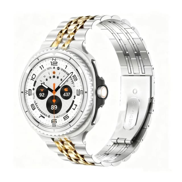 Ensiluokkainen materiaali: Tämä ranneke on valmistettu titaaniseoksen ja ruostumattoman teräksen sekoituksesta, mikä tarjoaa hienostuneen ulkonäön ja tuntuman. Materiaalien yhdistelmä takaa mukavan istuvuuden ja kestää päivittäistä kulutusta. Titaaniseoskomponentit tekevät rannekkeesta kevyen, kun taas ruostumattomasta teräksestä valmistetut osat parantavat sen rakenteellista eheyttä ja korroosionkestävyyttä. Tämä varmistaa pitkäikäisen ja tyylikkään lisävarusteen Samsung Galaxy Watch 8/8 Classic -kellollesi. Se sopii täydellisesti sekä arkeen että juhlaan.