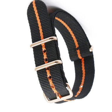 • Nylon kellon ranneke soikealla soljella Musta + oranssi 20 mm