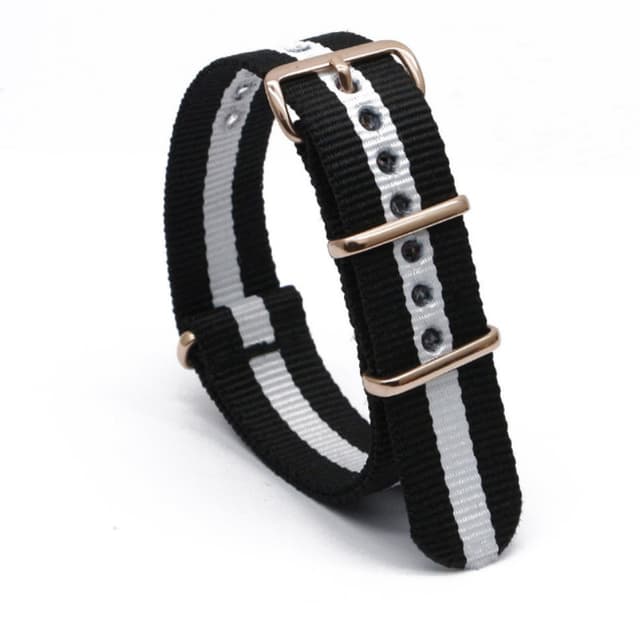 • Nylon kellon ranneke soikealla soljella Musta + Valkoinen 20 mm