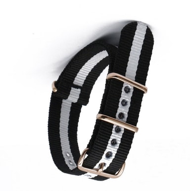 Nylon kellon ranneke soikealla soljella Musta + Valkoinen 20 mm