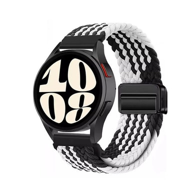 Turvallinen ja tyylikäs muotoilu: Tämä nylonpunottu magneettinen kellon ranneke yhdistää toiminnallisuuden tyylikkääseen estetiikkaan. Mustavalkoinen kudottu muotoilu lisää ripauksen hienostuneisuutta kelloosi, mikä tekee siitä sopivan sekä rentoihin että muodollisiin tilaisuuksiin. Magneettilukko varmistaa turvallisen istuvuuden estäen kellosi putoamisen vahingossa. Päivitä kellosi tyyliä ja turvallisuutta tällä muodikkaalla ja luotettavalla 20 mm:n kellon rannekkeella, joka on yhteensopiva Huawei Watch GT5-, GT4-, Samsung-, Xiaomi- ja Garmin-kellojen kanssa.