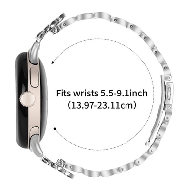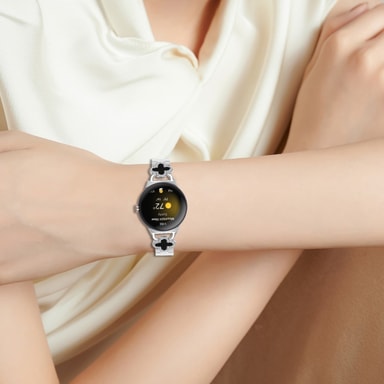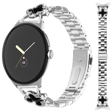 Tyylikäs apilan muotoilu: Korosta Google Pixel -kelloasi ripauksella eleganssia. Apilan muotoilu, jota koristavat kimaltelevat strassit, lisää ranteeseesi hienostuneen ja ainutlaatuisen esteettisen ilmeen. Tämä huomiota herättävä muotoilu on täydellinen lisämään persoonallisuutta jokapäiväiseen tyyliisi. Huolellisesti valmistettu apila on onnen ja kauneuden symboli, joten se on ihanteellinen asuste kaikkiin tilaisuuksiin. Upotetut strassit tuovat lisäviehätystä, vangitsevat valon ja kiinnittävät huomion moitteettomaan makuusi asusteiden suhteen. Apilan muotoilu, joka on yhteensopiva Google Pixelin kanssa, tekee kellostasi tyylikkäämmän ja huomiota herättävämmän.