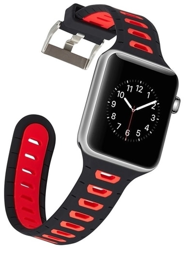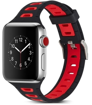 Silikoni-ranneke, joka sopii Apple Watchiin, 38 mm, Musta, Punainen