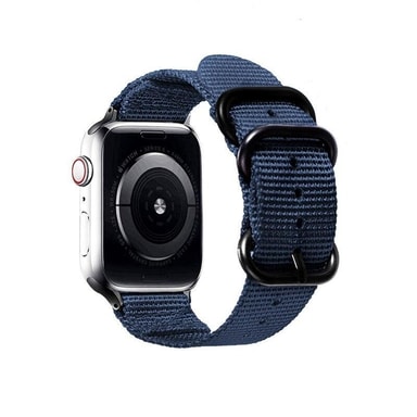 Nato-ranneke Apple Watch Series 10 46mm: lle pikakiinnityksellä. Ranneke on valmistettu nailonista, mikä antaa sille tyylikkään ulkonäön ja miellyttävän tunteen.