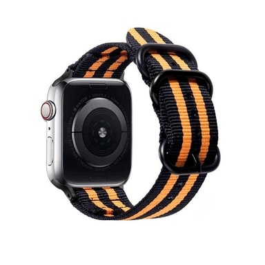 Nato-ranneke Apple Watch Series 7-9 45mm: lle pikakiinnityksellä. Ranneke on valmistettu nailonista, mikä antaa sille tyylikkään ulkonäön ja miellyttävän tunteen.