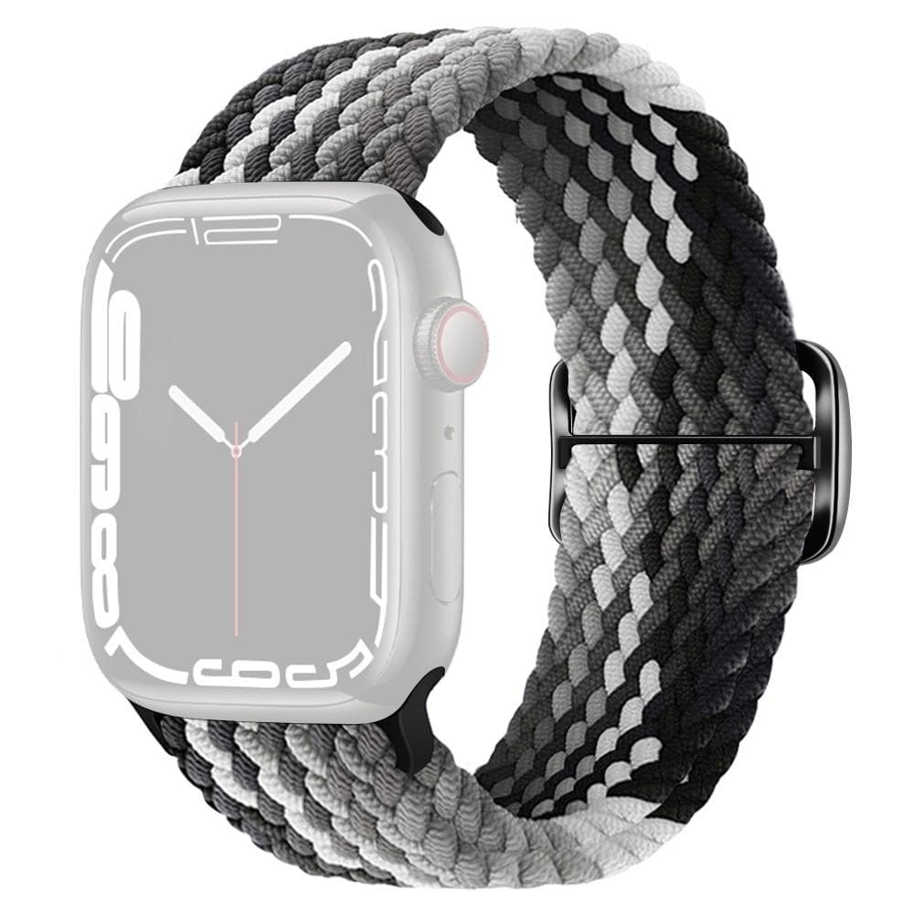 Joustava punottu ranneke Apple Watch Series 4-6 40mm: een nopeasti ja helposti säädettävällä soljella. Ranneke on valmistettu nailonista, mikä antaa sille tyylikkään ulkonäön ja miellyttävän tunteen.Tutustu ominaisuuksiin