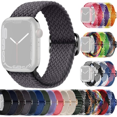 Joustava punottu ranneke Apple Watch Series 7-9 41mm: een nopeasti ja helposti säädettävällä soljella. Ranneke on valmistettu nailonista, mikä antaa sille tyylikkään ulkonäön ja miellyttävän tunteen.Tutustu ominaisuuksiin