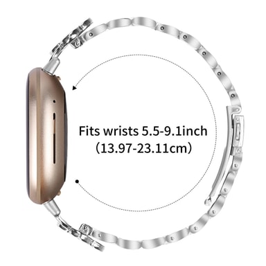 Ensiluokkainen ruostumaton teräs: Valmistettu korkealaatuisesta ruostumattomasta teräksestä, tämä ranneke tarjoaa sekä kestävyyttä että ylellisen tuntuman. Ensiluokkainen materiaali varmistaa, että ranneke on kestävä naarmuja, tummumista ja jokapäiväistä kulutusta vastaan. Se tarjoaa sileän ja mukavan istuvuuden ranteeseesi parantaen yleistä käyttökokemustasi. Ruostumattoman teräksen kestävä rakenne varmistaa, että Fitbit Versa 3, Versa 4 tai Sense 2 pysyy tukevasti kiinni, mikä antaa sinulle mielenrauhan. Sen eleganssi sopii sekä ammattimaisiin että rentoihin ympäristöihin.