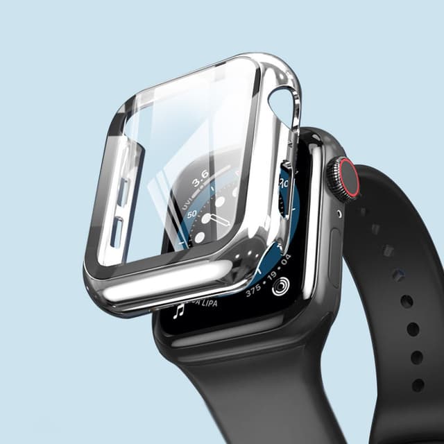 • Tyylikäs hopeinen PC-kotelo karkaistulla lasilla Apple Watchille 44 mm