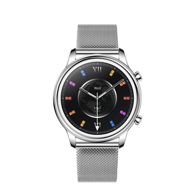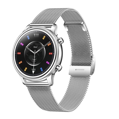 Tyylikäs ja toimiva: Älykellossa on tyylikäs ja moderni muotoilu sekä hopeinen viimeistely, mikä tekee siitä täydellisen asusteen mihin tahansa tilaisuuteen. Sen kevyt ja mukava muotoilu varmistaa, että voit käyttää sitä koko päivän ilman epämukavuutta.
