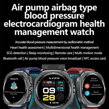Älykello, jossa on ilmapumpulla varustettu verenpaineen seuranta, EKG, AMOLED-näyttö, Bluetooth-puhelut ja kattava terveyden seuranta. Ihanteellinen terveystietoisille henkilöille, jotka etsivät tarkkaa ja kätevää terveyden hallintaa. Yhteensopiva...Tutustu ominaisuuksiin