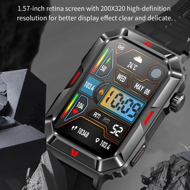 Vedenpitävä muotoilu: IP67-vesitiiviysluokituksensa ansiosta älykello kestää roiskeita ja sopii jokapäiväiseen toimintaan varmistaen kestävyyden erilaisissa ympäristöissä.