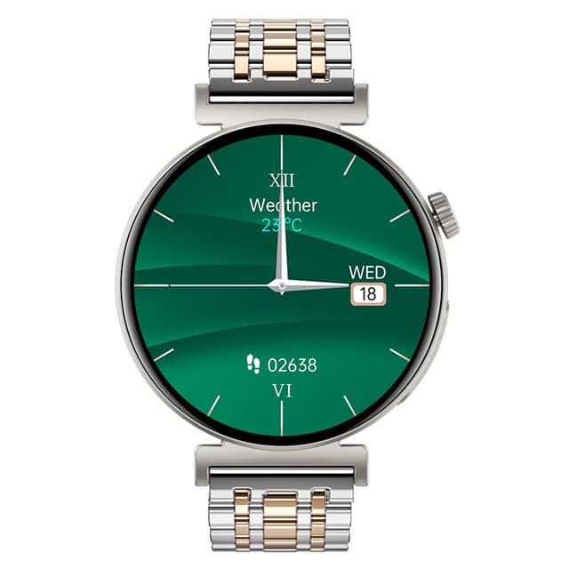 Tyylikäs muotoilu ja pitkä akku: Sinkkiseoksesta ja ruostumattomasta teräksestä valmistettu JA02-älykello on tyylikkään ja elegantin muotoilun omaava. 1,28 tuuman AMOLED-näyttö ja 416x416 DPI tarjoavat eloisat kuvat. 290 mAh:n puhdas kobolttilitium-akku tarjoaa 7–10 päivän käyttöajan ja 30 päivän valmiusajan (testattu käytännössä). Magneettinen lataus oikosulkusuojalla varmistaa turvallisen ja kätevän latauksen 2–3 tunnissa.