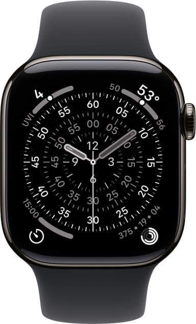 Apple Watch S11 42mm CEL (liuskekivi titaani/musta urheiluranneke) S/M