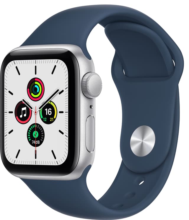 • Apple Watch SE 40 mm GPS (hopeinen alu./syv. sin. sport-ranneke)