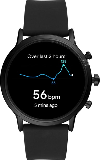 • Fossil Carlyle HR Gen. 5 älykello 44 mm silikoni (musta)