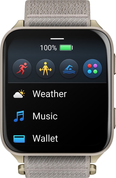 Pysy yhteydessä sisäänrakennettujen puhelutoimintojen avulla, joiden ansiosta voit soittaa ja vastaanottaa puheluita suoraan ranteestasi, kun kello on paritettu älypuhelimesi kanssa. Äänikomentotoiminto mahdollistaa kellon ominaisuuksien hallinnan tai älypuhelimen ääniavustajan käytön viesteihin vastaamiseen, muistutusten asettamiseen ja muuhun.