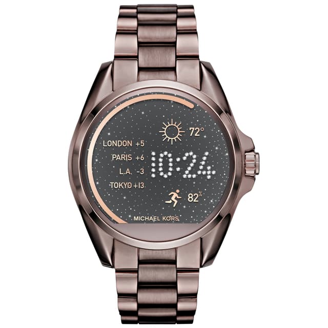Muotoilu: Michael Kors -älykello on näyttävä asuste tyylitietoiselle. Ruskean sävyisen kellon pyöreä 44,5 mm kellotaulu ja ranneke on valmistettu teräksestä, joka on sekä näyttävä että käytössä kestävä. Kellotaulun profiili ja ranneke voidaan vaihtaa kauden tai asun mukaan.