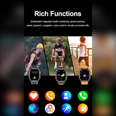Kattava terveyden seuranta: Tämä älykello tarjoaa jatkuvan terveyden seurannan, mukaan lukien sydämen sykkeen, verenpaineen ja veren happitasojen mittauksen. Sen unen seuranta -toiminto antaa tietoa unen kestosta ja laadusta, mikä auttaa käyttäjiä tekemään tietoon perustuvia päätöksiä hyvinvoinnistaan. Kerätyt tiedot synkronoidaan FitCloudPro-sovelluksen kanssa, jonka avulla käyttäjät voivat tarkastella trendejä ja kaavoja ajan myötä. Huomaa: Verenpaine-, veren happi- ja syketiedot ovat vain viitteellisiä, eikä niitä tule käyttää lääketieteellisiin tarkoituksiin tai ammattimaisen lääketieteellisen laitteiston korvikkeena. Älykello on yhteensopiva erilaisten laitteiden kanssa, mikä tekee siitä monipuolisen työkalun terveytesi hallintaan. Se on yhteensopiva esimerkiksi Huawei, Samsung ja APPLE laitteiden kanssa.