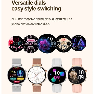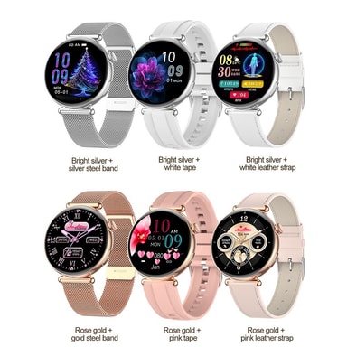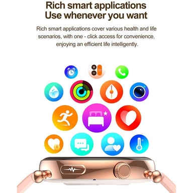 Tyylikäs ja toimiva muotoilu: Ruusukultainen viimeistely ja vaaleanpunainen nahkaranneke luovat hienostuneen ja muodikkaan ilmeen. 1,32 tuuman täyskosketusnäyttö, jonka resoluutio on 466x466, tarjoaa selkeän ja reagoivan käyttökokemuksen. Kellossa on myös uniajastin, jonka avulla voit helposti tarkistaa ajan aktivoimatta näyttöä. Magneettinen lataus varmistaa kätevän ja nopean latauksen. Tämä älykello on yhteensopiva Android 8.0:n ja uudempien sekä iOS 13.0:n ja uudempien kanssa.
