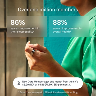 Nauti uusista ominaisuuksista ja tuotepäivityksistä Oura-jäsenyyden avulla, mikä auttaa tekemään terveytesi ja aktiivisuutesi seurannasta entistä yksilöllisempää. Uudet käyttäjät saavat ensimmäisen kuukauden ilmaiseksi, minkä jälkeen jäsenyys maksaa 5,99 € kuukaudessa.