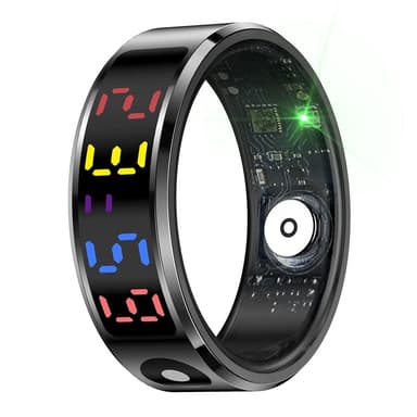 R12 5ATM vedenpitävä digitaalinen näyttö älysormus unen seuranta veren happipitoisuudella sykemittari latauskotelolla - musta / koko 12【Kattava terveyden seuranta】Seuraa unirytmiäsi, veren happitasoja ja sykettäsi tällä edistyneellä älysormuksella, jTutustu ominaisuuksiin