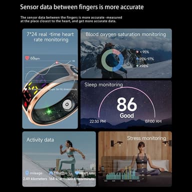• Vedenpitävä älysormus uniseurantaan, veren happipitoisuuteen ja sykemittariin - latauskotelo - koko 12