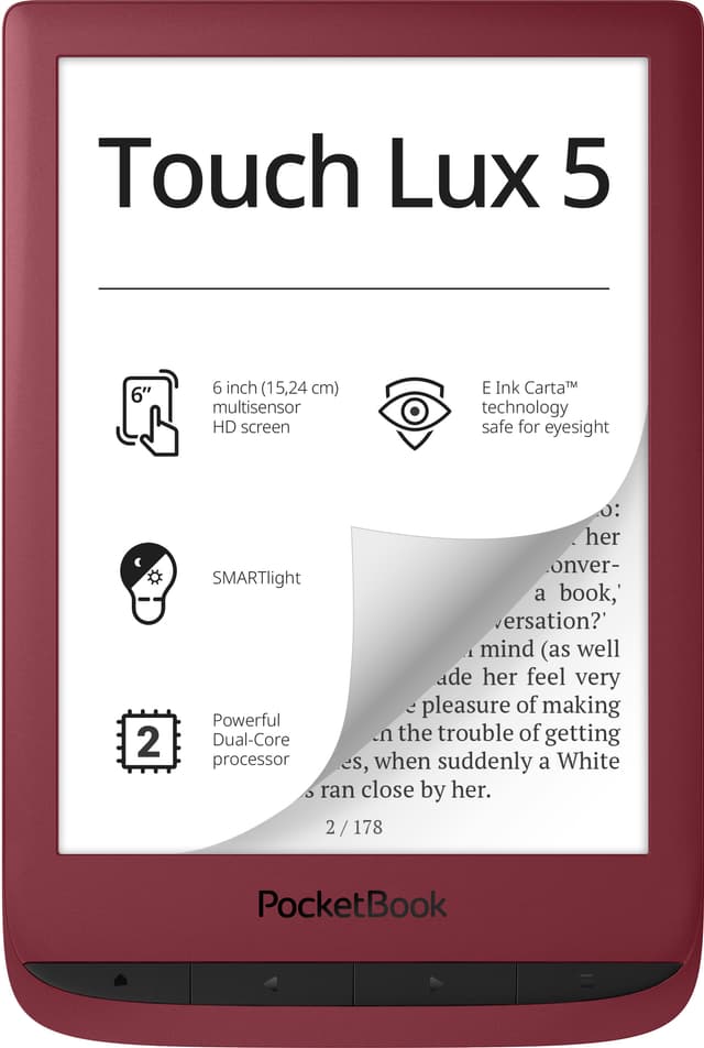 • PocketBook Touch Lux 5 e-kirjan lukulaite (punainen)