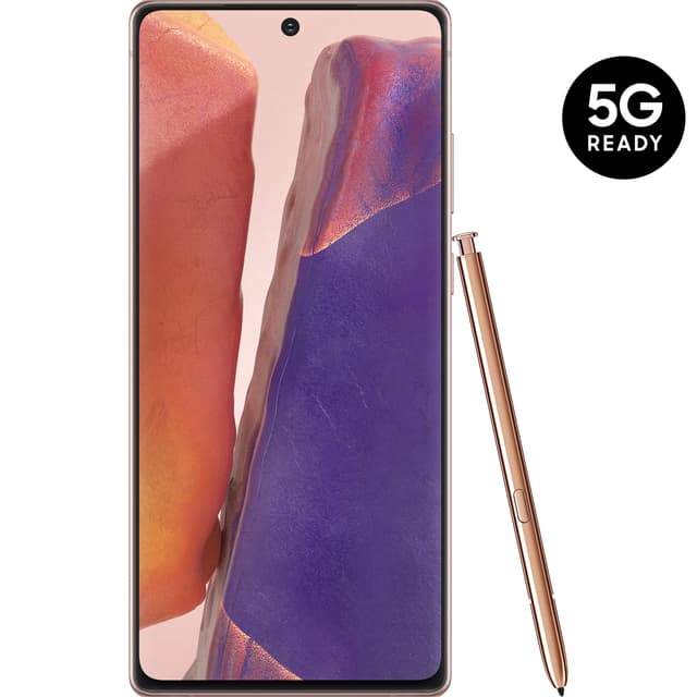 Samsung Galaxy Note20 5G -älypuhelimessa on uudistettu S Pen -kosketuskynä vain 26 millisekunnin viiveellä, Dolby Atmos -tuki, sekä upea 6,7-tuumainen Super AMOLED -kosketusnäyttö. Voit myös ottaa sillä hienoja kuvia 64 + 12 + 12 megapikselin kolmoiskameran avulla, joka hyödyntää kolminkertaista optista tarkennusta ja 30x Space Zoom -ominaisuutta. Lisäksi sen Exynos 990 -kahdeksanydinprosessori tukee 5G-verkkoja. (5G-yhteensopivuus toimii vain 5G-verkkoja hyödyntävillä alueilla.)