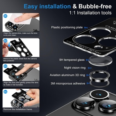 HD-kirkkaus, helppo asennus: Koe kristallinkirkas kuvanlaatu tällä iPhone 17 Air -puhelimen kanssa yhteensopivalla HD-kameran linssinsuojuksella. Erittäin ohut muotoilu varmistaa, että suojus ei häiritse kameran suorituskykyä, jolloin voit ottaa upeita valokuvia ja videoita ilman vääristymiä. Helppo asennusprosessi sisältää yksinkertaisen kohdistuksen ja levityksen, eikä kuplia tai jäämiä jää jäljelle. Tarkat leikkaukset varmistavat täydellisen istuvuuden iPhone 17 Air -puhelimen kameran linssille tarjoten täyden peiton ja suojan. Suojus on myös suunniteltu koteloystävälliseksi, joten voit käyttää sitä suosikkipuhelinkotelosi kanssa ilman yhteensopivuusongelmia. Nauti saumattomasta ja vaivattomasta kokemuksesta tämän käyttäjäystävällisen linssinsuojuksen avulla.