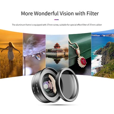 Objektiivissa on 16 mm:n polttoväli, jonka avulla voit saavuttaa laajakulmaperspektiivin jopa 120°:n näkökentällä. Objektiivi tarjoaa 0,6-kertaisen suurennuksen, mikä tarjoaa lähikuvan kuvanlaadusta tinkimättä. Tämä objektiivi, jonka suunnitteluarvo on jopa 20 miljoonaa pikseliä, pystyy tuottamaan teräviä ja yksityiskohtaisia kuvia, jotka täyttävät kaikkien älypuhelinvalokuvauksen ystävien vaatimukset.