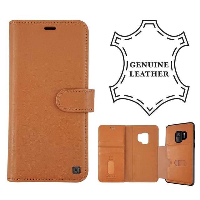 Aitoa nahkaa Samsung Galaxy S9 lompakkokotelo 2 in 1 -Tan